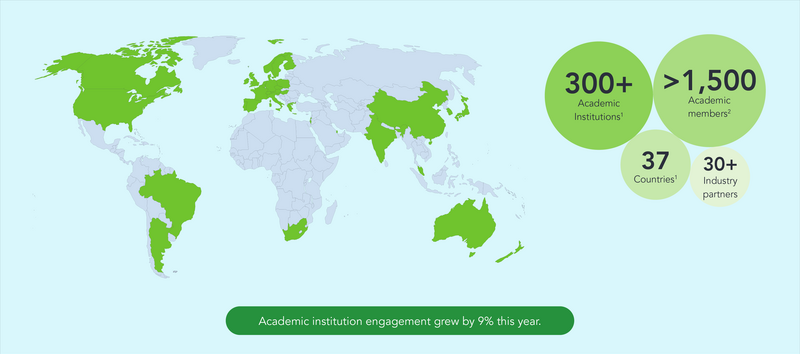 Institutional partnerships – 23 new academic institutions (↑9%)
